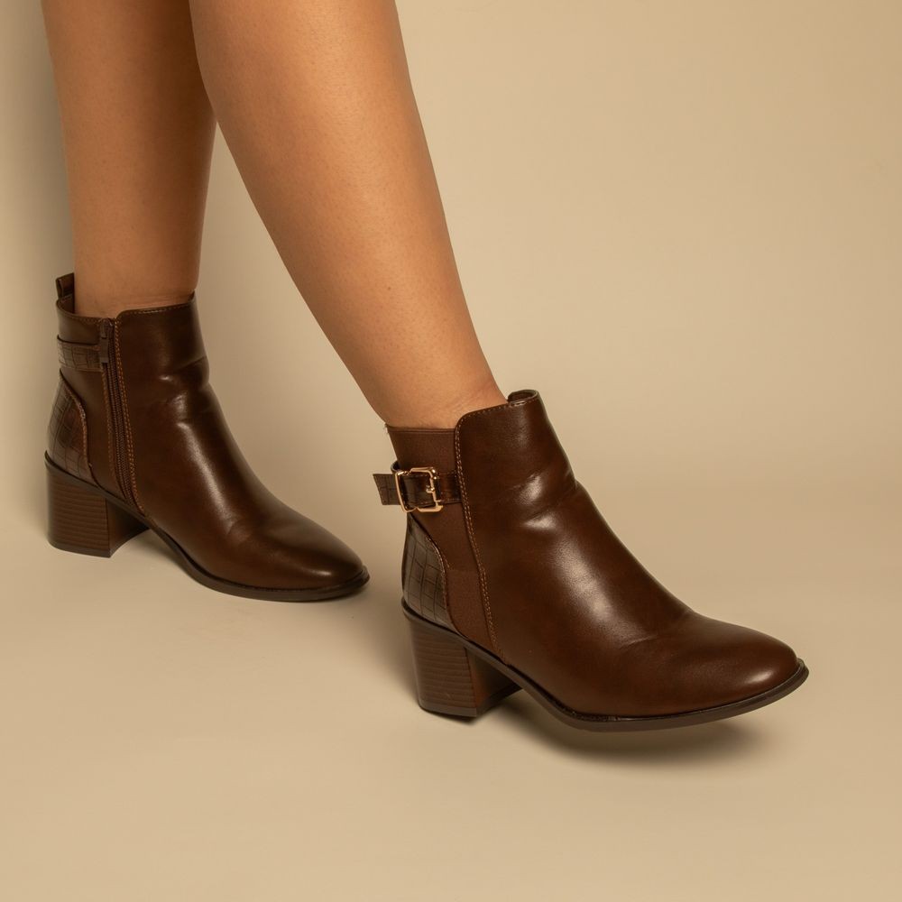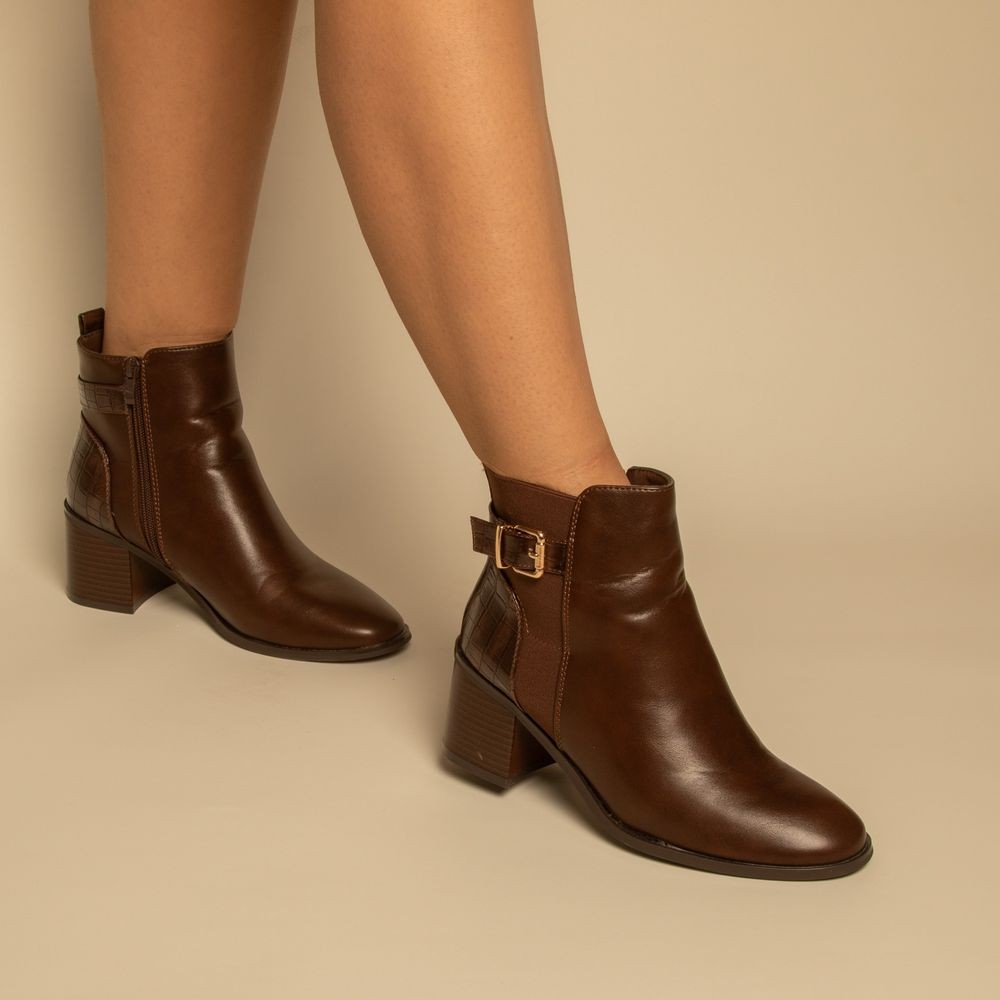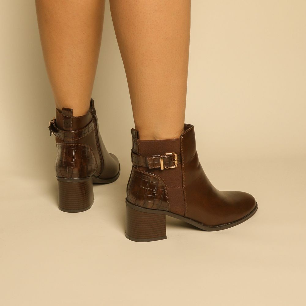 bottines - Simili cuir - Marron- REF-0818