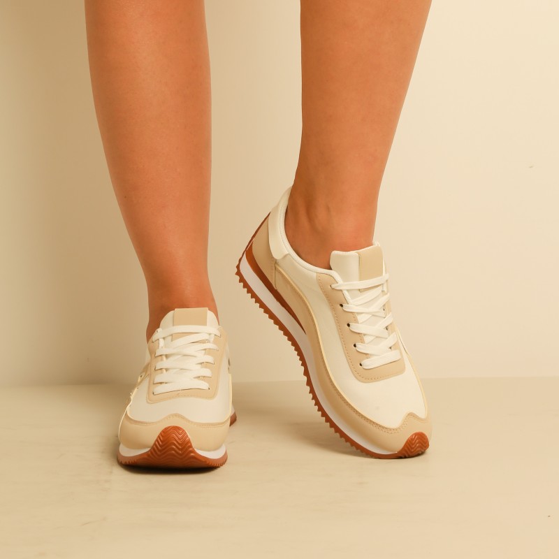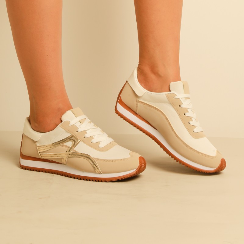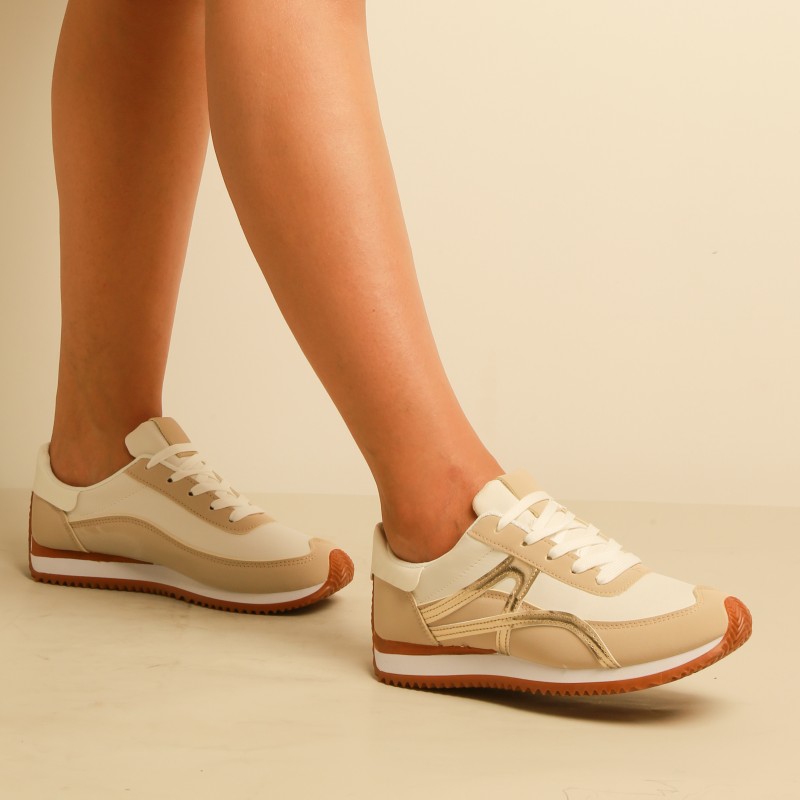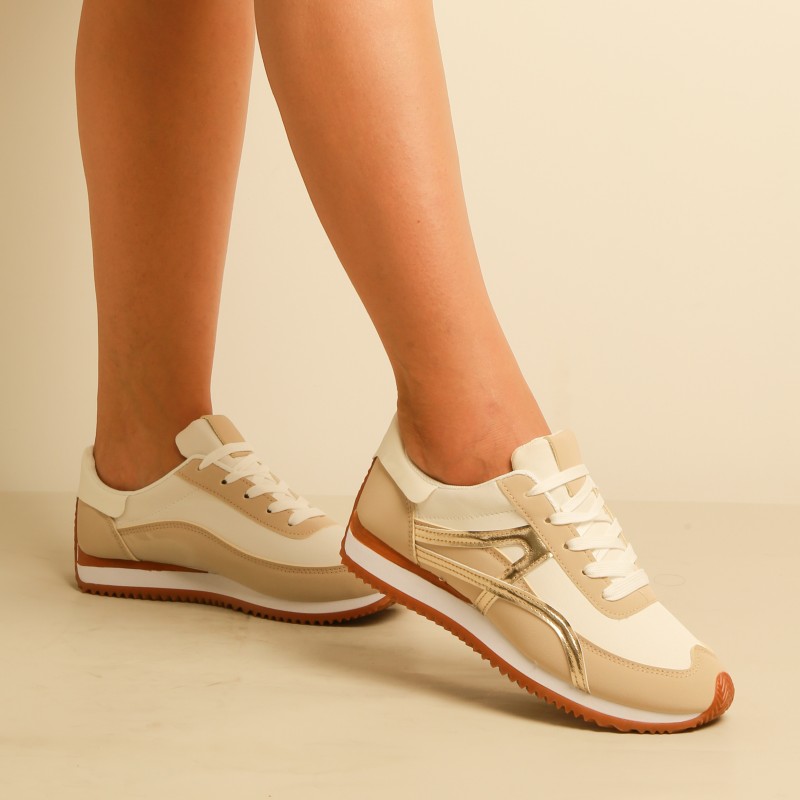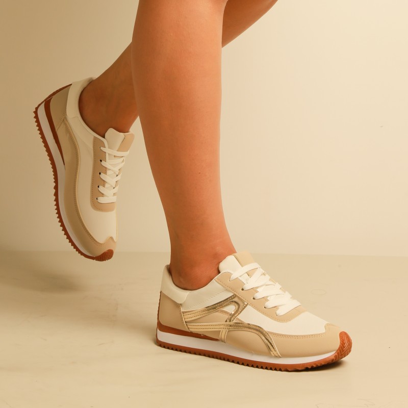 Basket-Daim/simili cuir-Beige/Doré-REF-0670