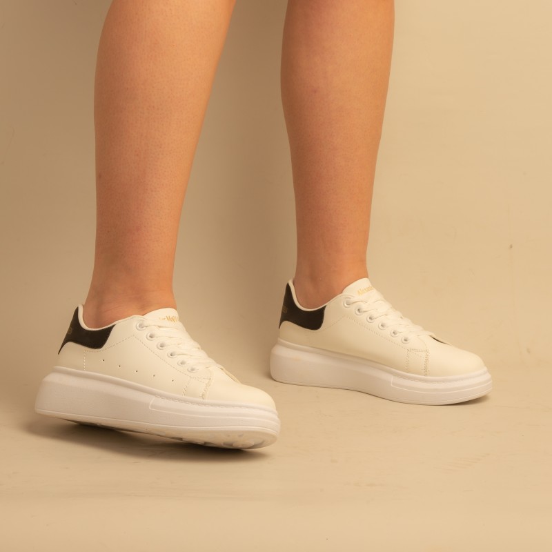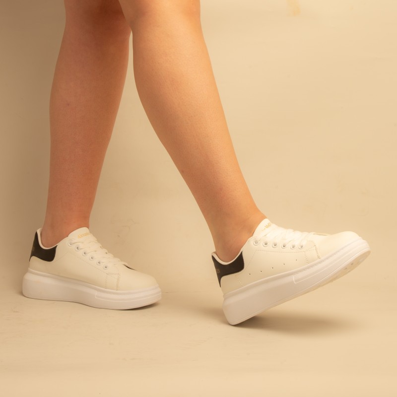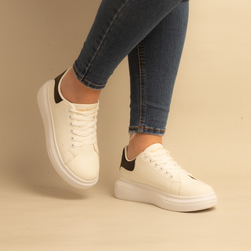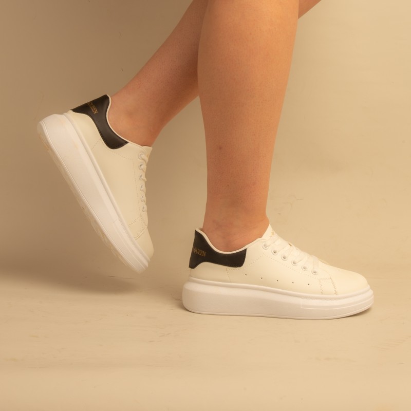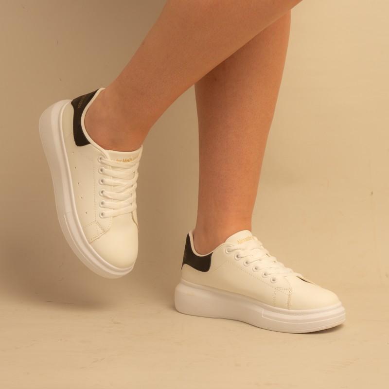 Basket over seize-Simili Cuir-Blanc/Noir- REF-0525