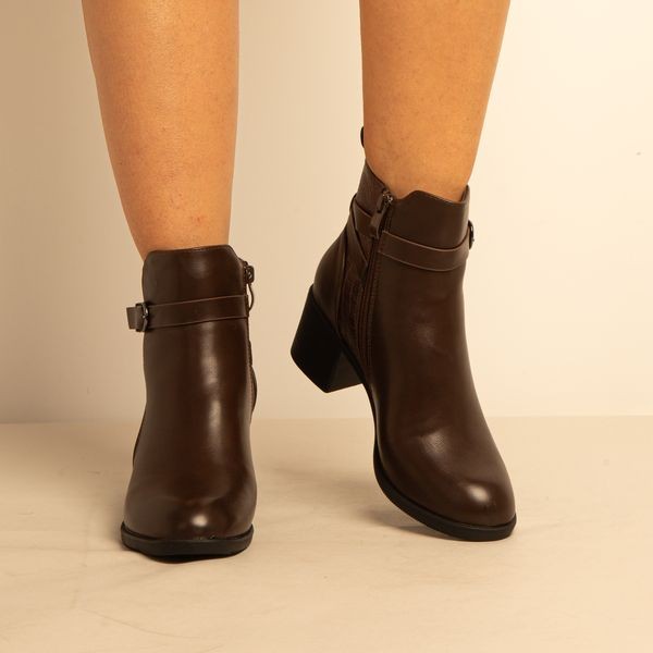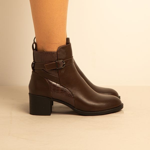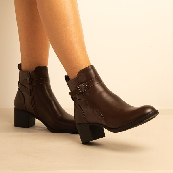 Bottine a Talon – Simili Cuir – Marron -REF-0673