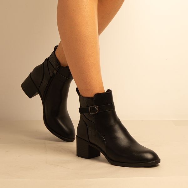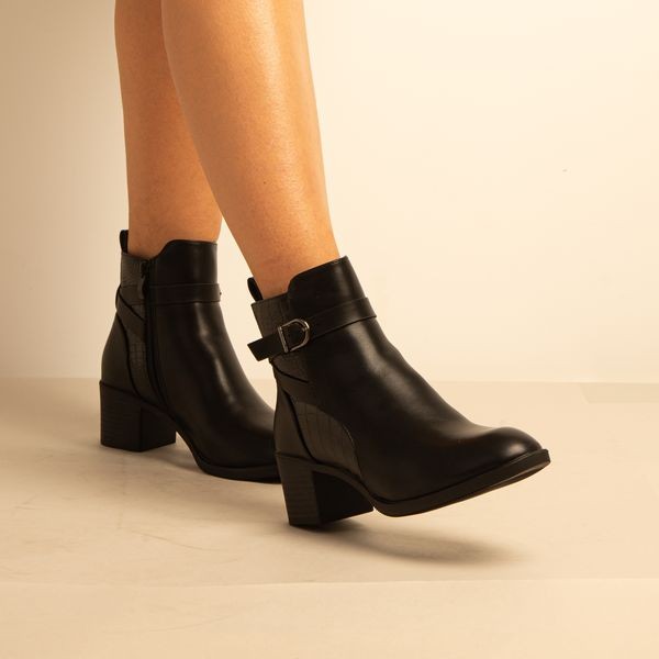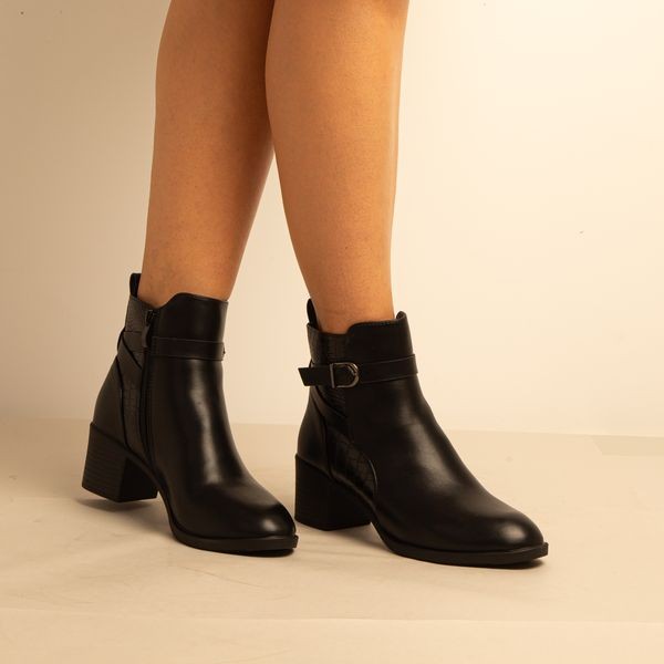 Bottine a Talon – Simili Cuir – Noir -REF-0675