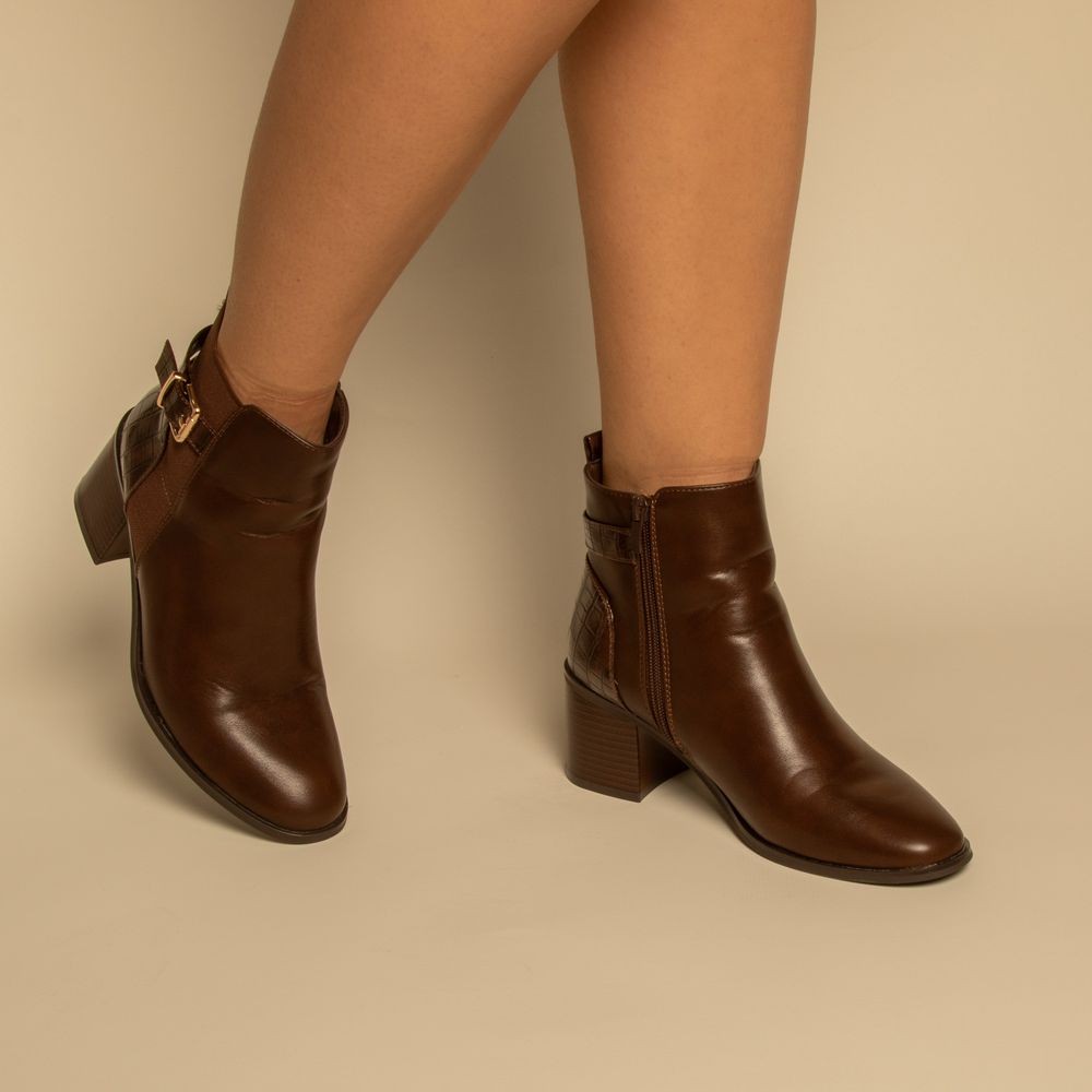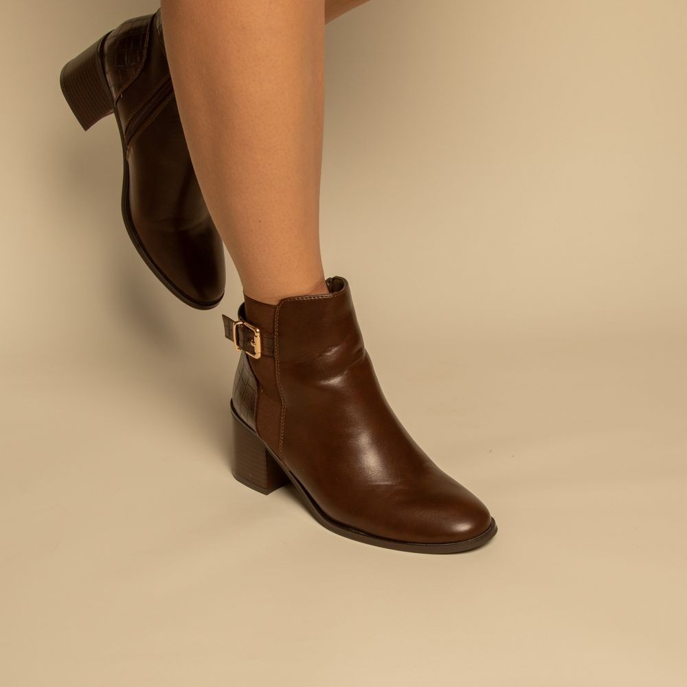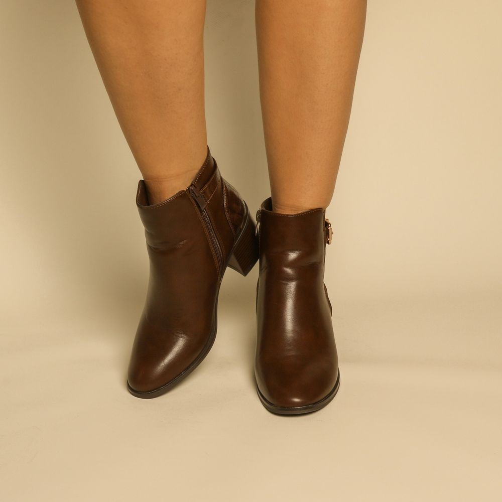 bottines - Simili cuir - Marron- REF-0818