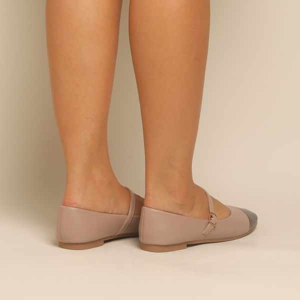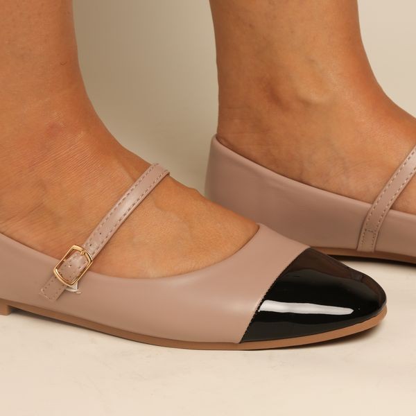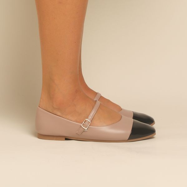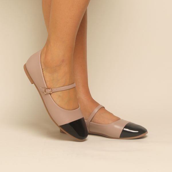 Mocassin -Mary Jane - Nude et noir REF-0780
